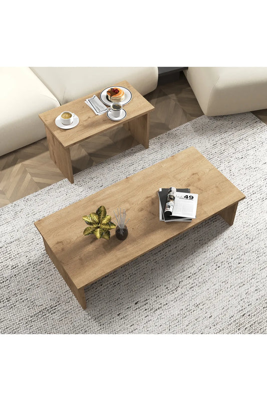 Cool Home Vera – 2-i-1 Kaffebordsett / Serveringsbord – Eik, 110×50 cm