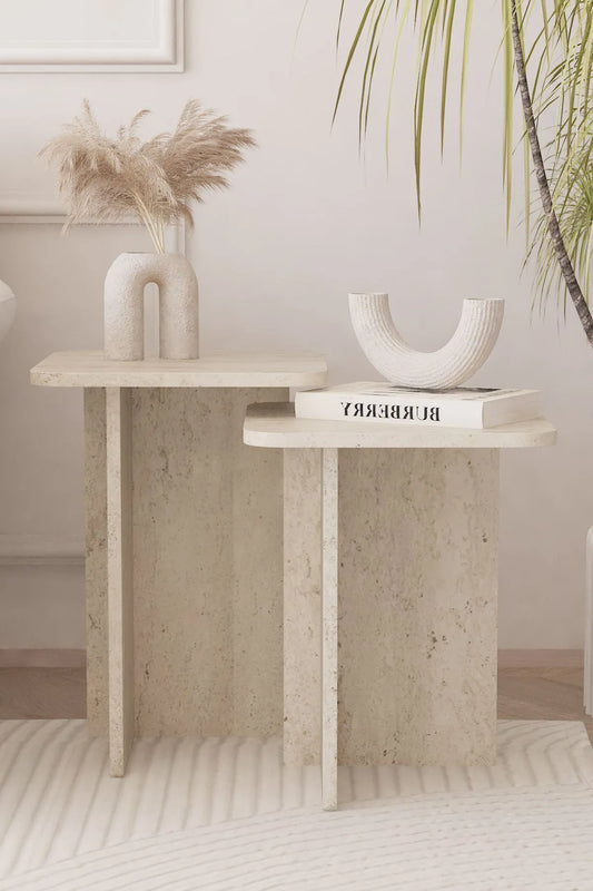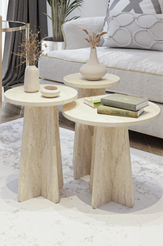 OBİ Atölye Mantar 3-delt Nestingbord – Skandinavisk Stil med Travertinmønster