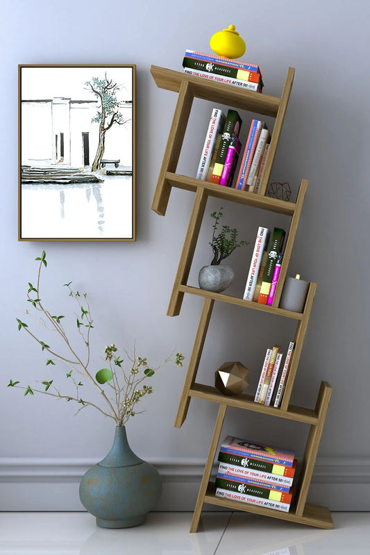 Moonlife Paris Veggmontert Dekorativ Bokhylle – Furuimitasjon | 5 Hyller