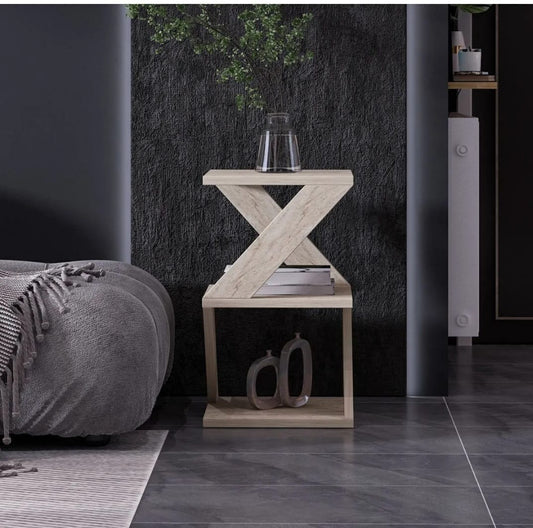 İNARCH DİZAYN Albeni Geometrisk Sidebord med Travertin Mønster – Moderne og Stilren 3-hylle Design